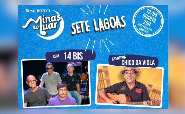 Um dos mais tradicionais e populares eventos culturais do estado, o Minas ao Luar, retorna a Sete Lagoas na próxima semana, na quarta-feira, mais uma vez na data mais romântica do ano, o Dia dos Namorados, em 12 de junho, véspera do feriado municipal de 13 junho – Dia de Santo Antônio, padroeiro da cidade. A população poderá acompanhar shows da banda mineira 14 Bis e do sertanejo Chico da Viola, que se apresentam gratuitamente na Praça Dom Carlos Carmelo Mota (Praça da Feirinha), a partir das 20h.