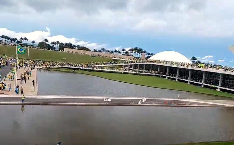 Manifestantes inconformados com o resultado das eleições e o início do atual governo invadiram o Congresso Nacional, ocupando a rampa e o teto do plenário após romperem a barreira formada por policiais militares. Na sequência, eles invadiram também o Palácio do Planalto e o Supremo Tribunal Federal (STF), entrando inclusive no plenário do STF.