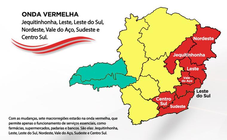 A região Norte também regrediu e passou da onda Verde para a Amarela. Sendo assim, apenas as cidades do Triângulo Mineiro estão na onda que permite um maior número de atividades econômicas, de acordo com o Minas Consciente.