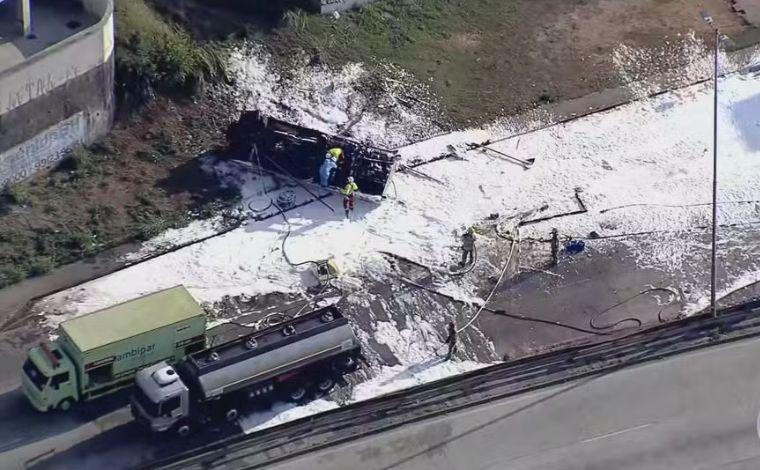 Para conter o risco de incêndios ou explosões, os bombeiros realizaram a aplicação de espuma especial na pista. A medida de segurança também motivou a retirada de moradores de casas e apartamentos próximos ao local do acidente.