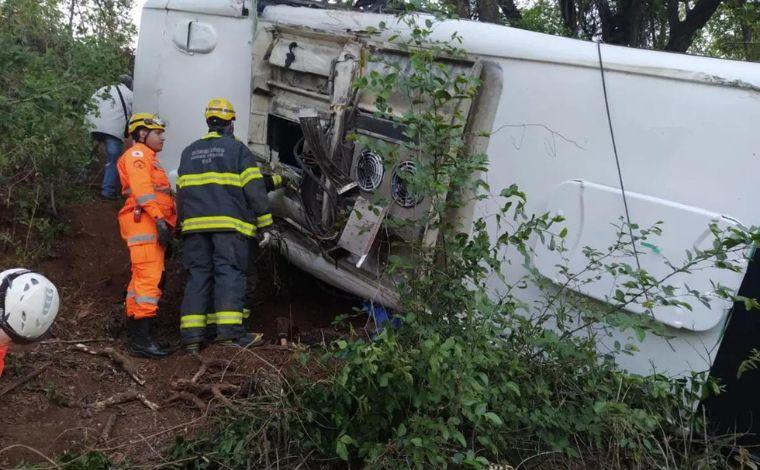 De acordo com os militares, o veículo, que era ocupado por 17 pessoas, incluindo o motorista, teria saído da pista e capotado na rodovia. Ainda não se sabe o motivo do acidente ou se chovia no momento do capotamento.