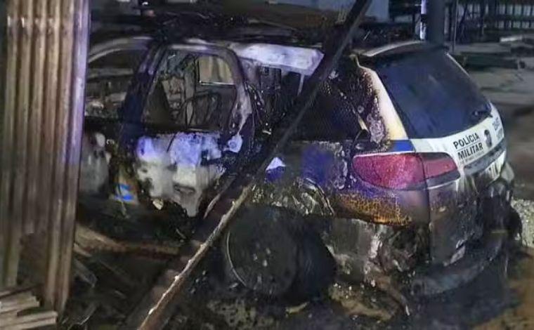 O crime ocorreu na rua Gessy de Assis Pena, onde a viatura estava em uma oficina para manutenção elétrica. Moradores da região tentaram conter as chamas, mas o veículo sofreu danos significativos após parte do telhado da oficina desabar sobre ele.