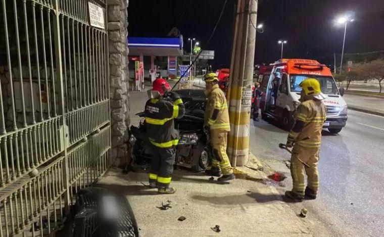 Um carro bateu contra um poste na madrugada desta terça-feira (7), na avenida Presidente Antônio Carlos, no bairro São Luiz, região da Pampulha, em Belo Horizonte. Segundo o Corpo de Bombeiros, o veículo era ocupado por um casal que apresentava "sinais visíveis de embriaguez".