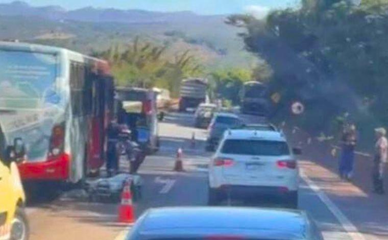Um acidente envolvendo um ônibus e uma carreta cegonheira deixou 21 pessoas feridas na manhã desta quarta-feira (17), na BR-381, Rodovia Fernão Dias. A colisão aconteceu no km 528, altura de Brumadinho, na Região Metropolitana de Belo Horizonte.