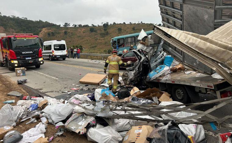 Dois motoristas morreram em um grave acidente envolvendo um ônibus e um caminhão na BR-116, próximo a Teófilo Otoni, no Vale do Mucuri, na manhã desta segunda-feira (12).