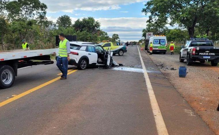 Já o motorista do carro disse que o condutor da carreta estava parado no meio da pista conversando com outro motorista e não teve tempo de frear.