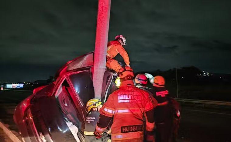 Um homem de 35 anos morreu na madrugada deste domingo (31) após colidir com seu carro em um poste metálico de iluminação. O acidente aconteceu no entroncamento das MGs 010 e 424, na entrada do bairro Morro Alto, em Vespasiano, região metropolitana de Belo Horizonte.