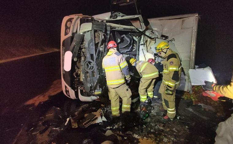 De acordo com o Corpo de Bombeiros, a colisão frontal aconteceu por volta de 0h40. O caminhão, carregado com verduras e dirigido pela vítima, seguia no sentido Montes Claros quando colidiu com a carreta carregada de cimento, que seguia no sentido oposto.