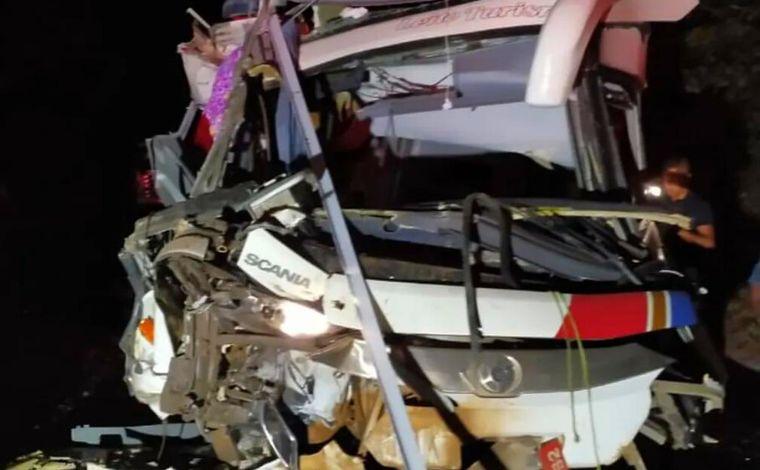 Conforme informações do Corpo de Bombeiros, o ônibus colidiu na traseira da carreta, que estava parado em uma fila devido a um outro acidente na mesma região da rodovia.