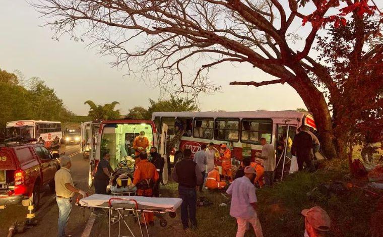 Um ônibus com 30 trabalhadores bateu em uma árvore às margens da BR-265, nesta quarta-feira (28), no município de São Sebastião do Paraíso, na Região Sudoeste de Minas Gerais. Os passageiros ficaram feridos e foram socorridos para unidades de saúde próximas ao local do acidente.