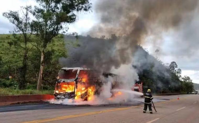 De acordo com o Corpo de Bombeiros, o motorista do coletivo interrompeu a viagem ao escutar um estouro no motor. Ao verificar, percebeu chamas na parte traseira do ônibus, que se espalharam rapidamente.