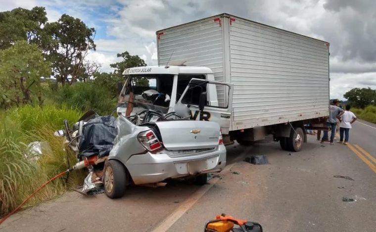 O motorista do caminhão relatou ao Corpo de Bombeiros que o condutor do carro tentou desviar de um buraco, perdeu o controle do automóvel, invadiu a contramão e bateu contra o veículo maior.
