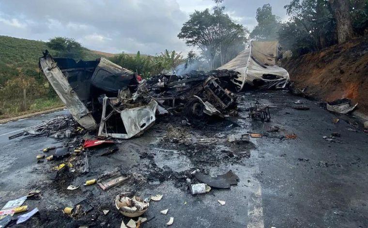 A batida frontal ocorreu entre um caminhão com placa registrada na cidade de Domingos Martins (ES), que seguia do Nordeste em direção a São Paulo, e uma carreta com placa de Laranjal, Minas Gerais, que se deslocava no sentido Caratinga.