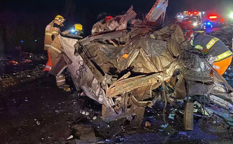 De acordo com a Polícia Rodoviária Federal (PRF), uma carreta carregada com andaimes e caixas de plástico invadiu a contramão da pista, colidindo frontalmente com outros três veículos. Na carreta que invadiu a contramão, estavam um homem de 79 anos e sua filha de 43, que não resistiram aos ferimentos e morreram no local.