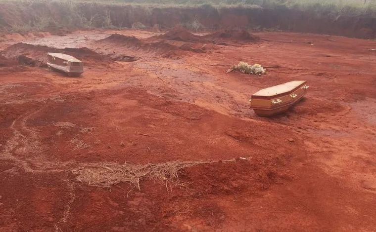 O Cemitério Parque da Paz em Paracatu, no Noroeste de Minas, sofreu danos após uma forte chuva na última sexta-feira (14). Imagens que circulam nas redes sociais mostram caixões que foram desenterrados pela enxurrada e ficaram expostos.