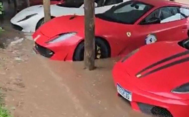 Um encontro de Ferraris que ocorria na cidade de Urubici, em Santa Catarina, terminou com os carros de luxo submersos pela água das fortes chuvas que atingiram o estado nesse sábado (7). Vídeos que circulam nas redes sociais mostram os veículos na garagem de uma pousada. (Veja vídeo)