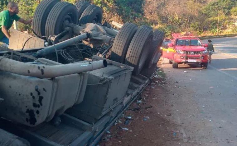 Um motorista ficou ferido após uma carreta carregada com vasos e pias de banheiro tombar na madrugada deste domingo (2), na BR 381, em Santa Luzia, na Região Metropolitana de Belo Horizonte. O acidente ocorreu na altura do bairro Bom Destino, por volta das 5h23.