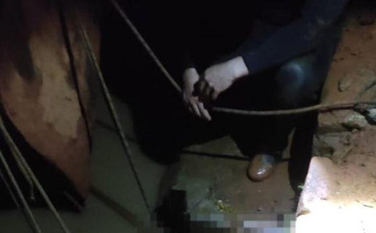 Os bombeiros realizaram o resgate do corpo, que pesava cerca de 150 kg. Ele estava a meio metro de profundidade. Uma retroescavadeira foi utilizada para içar a vítima.