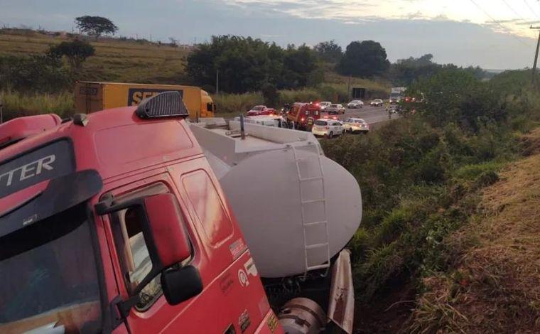 O caminhoneiro relatou à Polícia Rodoviária que seguia pela faixa adicional da pista quando o veículo teria invadido a faixa e causado o acidente.
