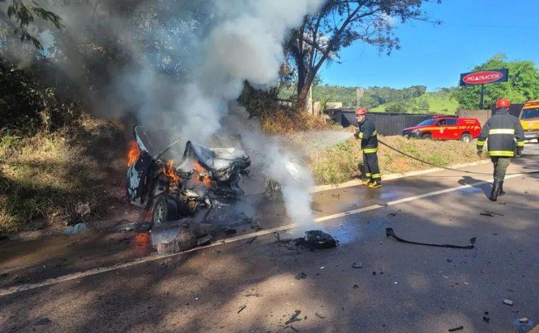 De acordo com o Corpo de Bombeiros, devido ao impacto da colisão, o motorista do Palio foi projetado para fora do carro, que pegou fogo.