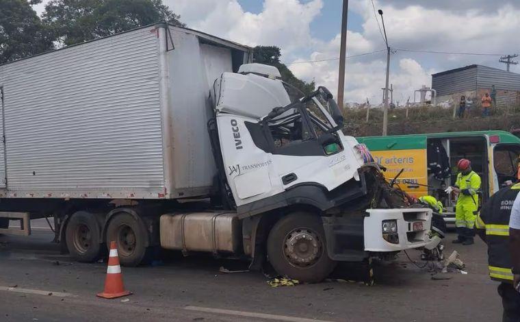 Um homem morreu em um acidente entre duas carretas na BR-381, em Betim, na região metropolitana de Belo Horizonte, neste sábado (7). A ocorrência foi registrada no sentido São Paulo, na altura do km 496, próximo da antiga barreira.