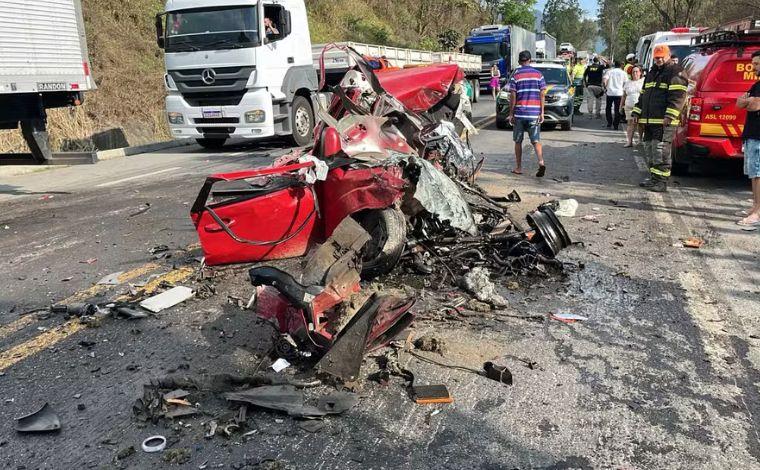 Um motorista morreu em um grave acidente na tarde deste domingo (13) após uma colisão frontal entre um carro de passeio e um caminhão no km 602 da BR-116, em São João do Manhuaçu, na Zona da Mata mineira. O impacto foi violento, e o motorista do carro ficou preso às ferragens.