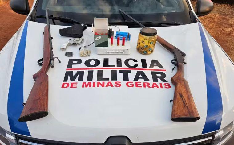Na propriedade foram encontradas munições, duas espingardas e um revólver que, possivelmente, foi utilizado no crime.