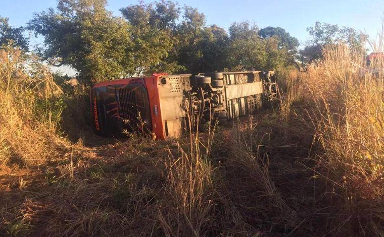 Testemunhas relataram aos bombeiros que o motorista perdeu o controle do ônibus, invadiu a contramão e tombou fora da pista de rolamento.