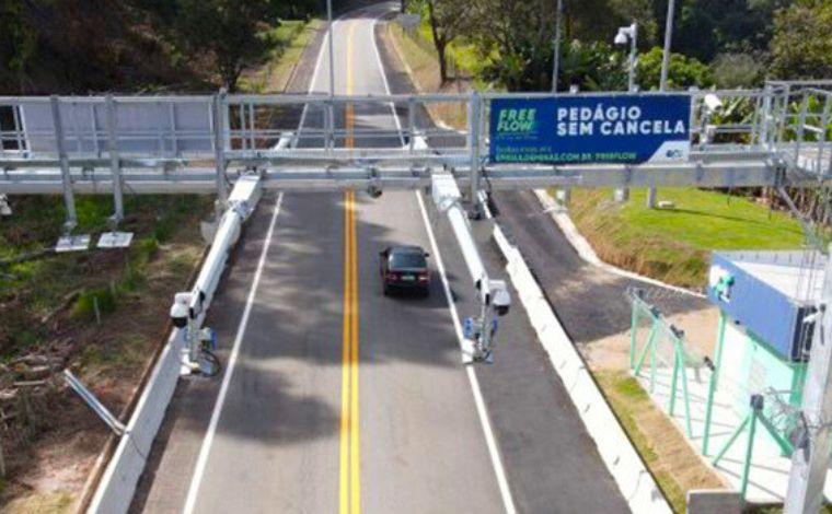 O primeiro pórtico do pedágio sem cancela - Free Flow de Minas Gerais começará a funcionar a partir da meia-noite do dia 4 de junho. O sistema inédito de cobrança de pedágios nas estradas mineiras está localizado no km 12,7 da MG-459, em Monte Sião, no Sul do estado.