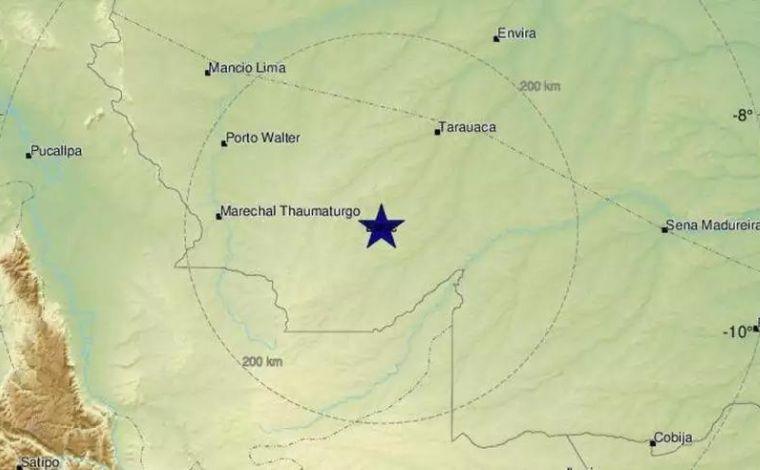 Um terremoto de magnitude 6,5 atingiu a região da fronteira entre o Peru e o Brasil nessa terça-feira (7). O tremor ocorreu às 21h55, a uma profundidade de 616 km e a cerca de 111 km da cidade de Tarauacá, no Acre, de acordo com o Serviço Geológico dos Estados Unidos.