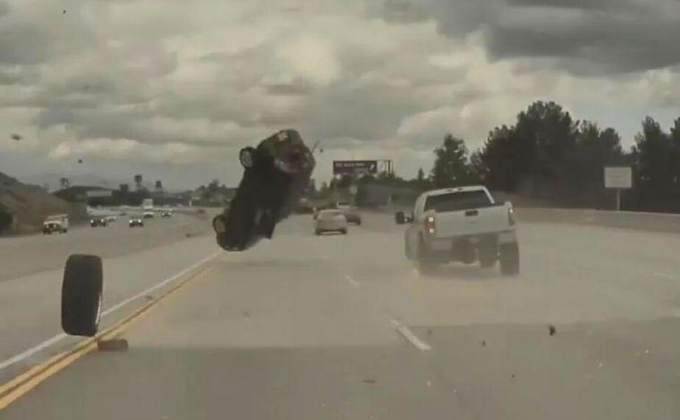 O motorista de um carro Kia estava seguindo por uma rodovia em Chatsworth, Los Angeles, Califórnia, quando a roda de uma caminhonete que seguia na mesma direção se soltou e atingiu o carro. O impacto lançou o veículo a três metros no ar e fez com que ele capotasse duas vezes antes de atingir o solo. O caso ocorreu na última quinta-feira (23).
